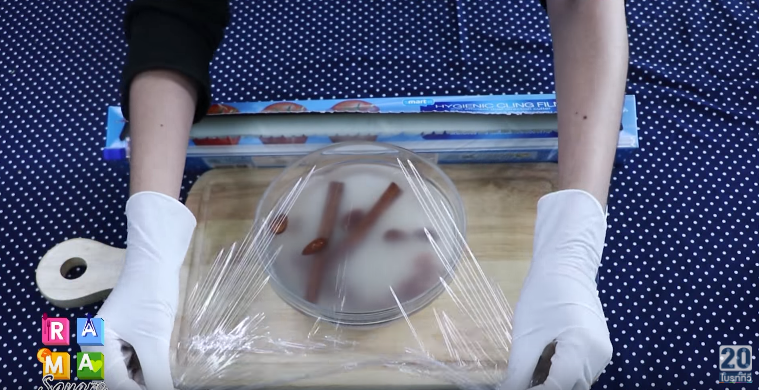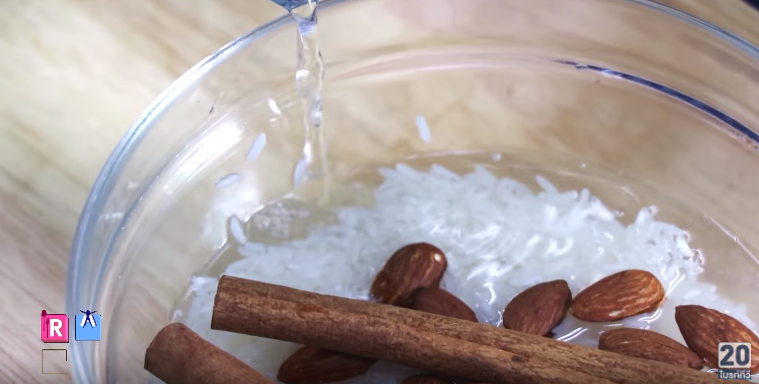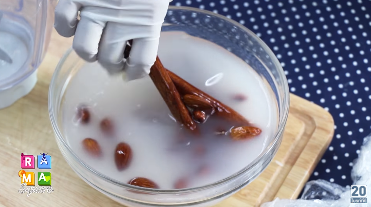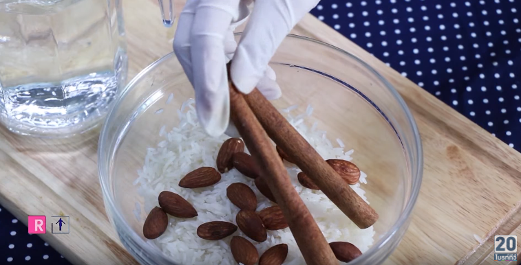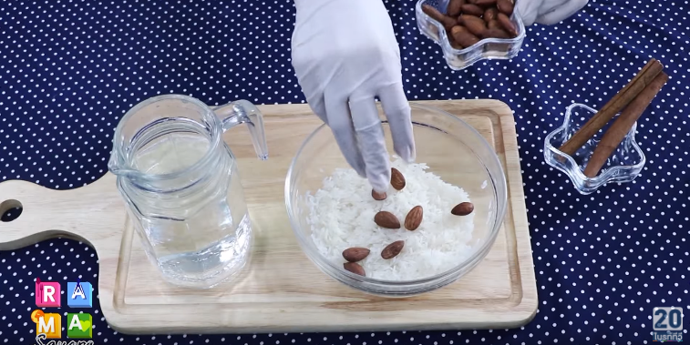 ใส่อัลมอนด์ อบเชยและน้ำเปล่าลงไป