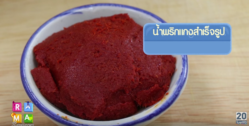 1. ตั้งกระทะใส่น้ำมันพืชเล็กน้อย ใส่พริกแกงลงผัดให้หอม|