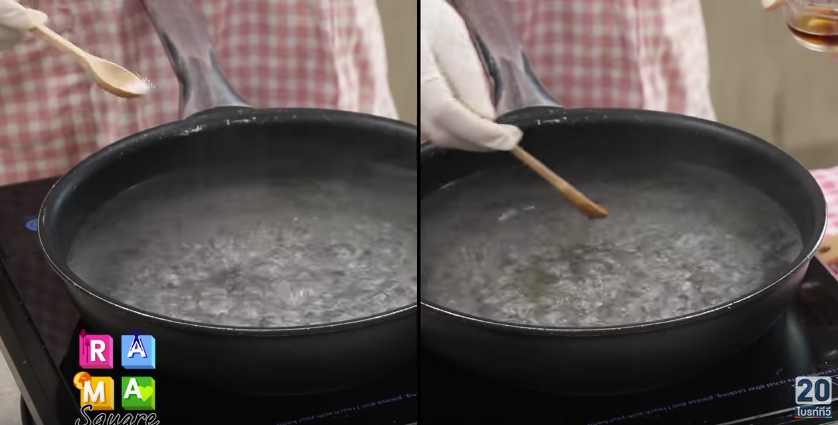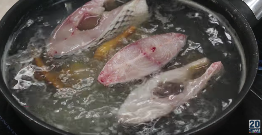 1. ต้มน้ำให้เดือดก่อนจึงใส่ปลา และห้ามคนจนกว่าจะสุก