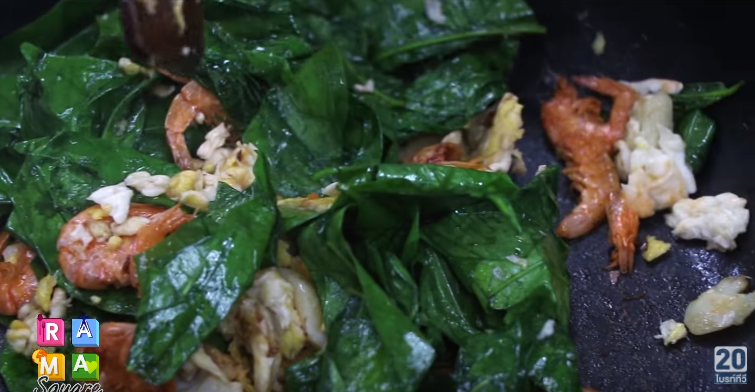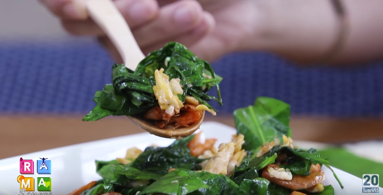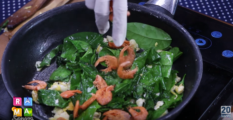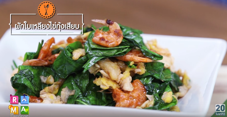 เมนู : ผักใบเหลียงไข่กุ้งเสียบ