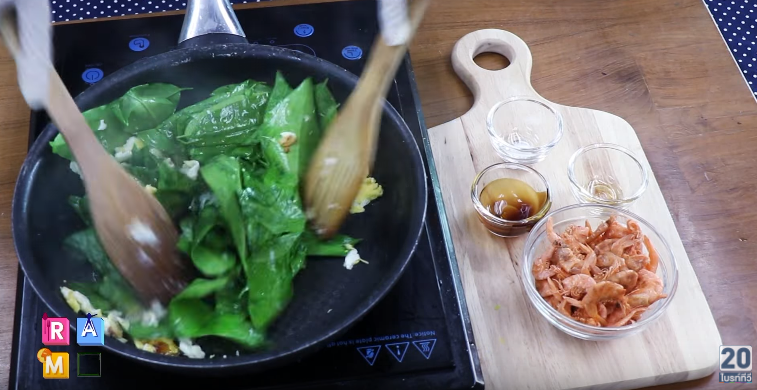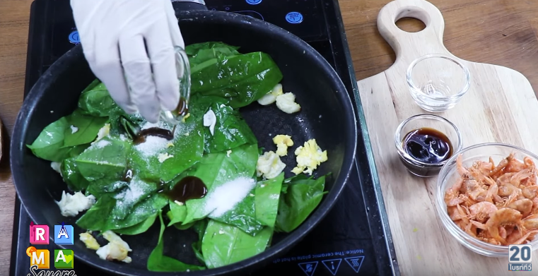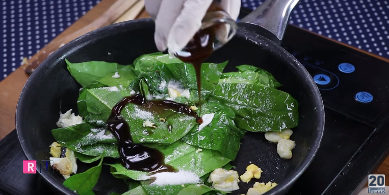 ปรุงรสด้วย น้ำตาล ซอสปรุงรส น้ำมันหอย ผัดให้เข้ากัน