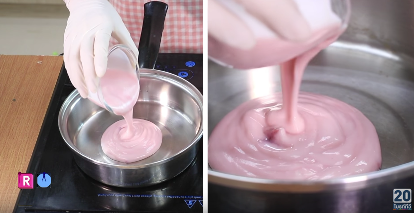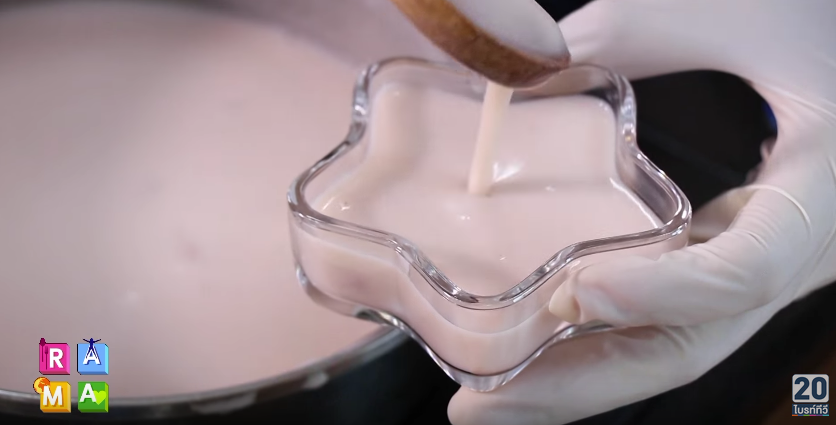3. เทใส่พิมพ์ จากนั้นนำเข้าตู้เย็นจนพุดดิ้งเซตตัว