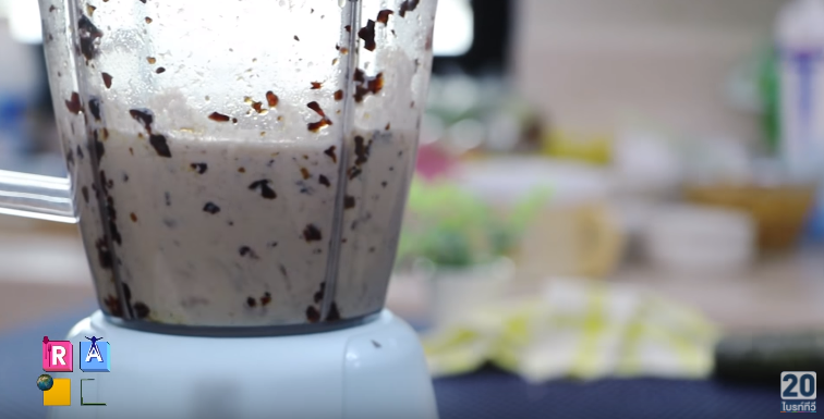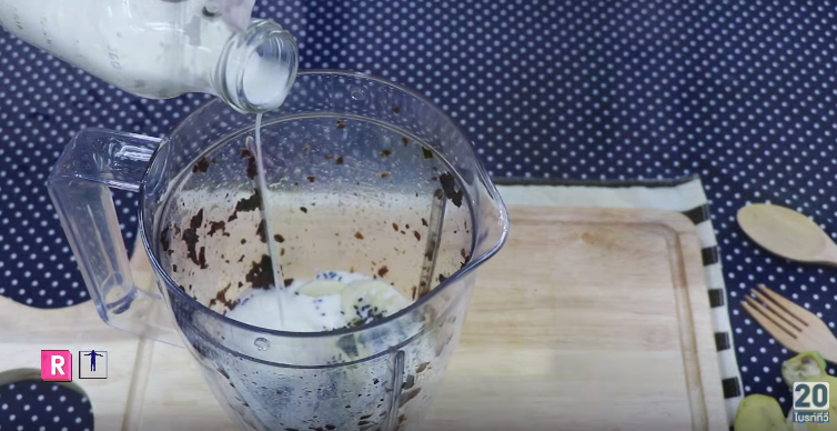 ใส่โยเกิร์ตและนมสดลงไปปั่นต่อจนเป็นเนื้อเดียวกัน