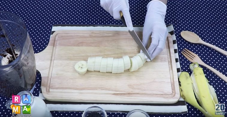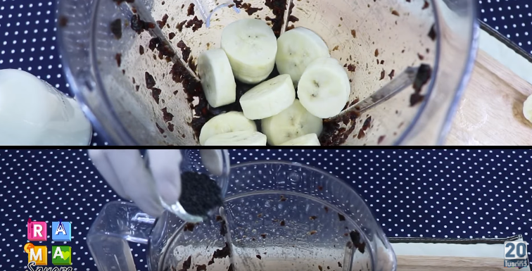จากนั้นใส่กล้วยหอมและงาดำลงไปปั่นให้เนียนละเอียดเข้ากัน