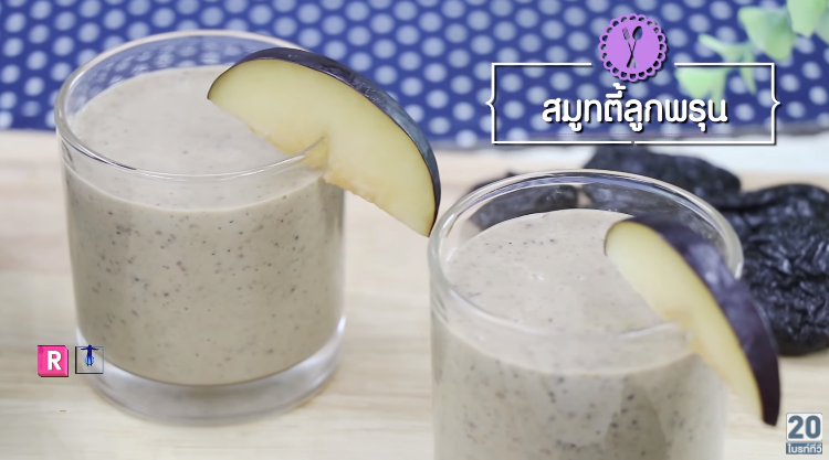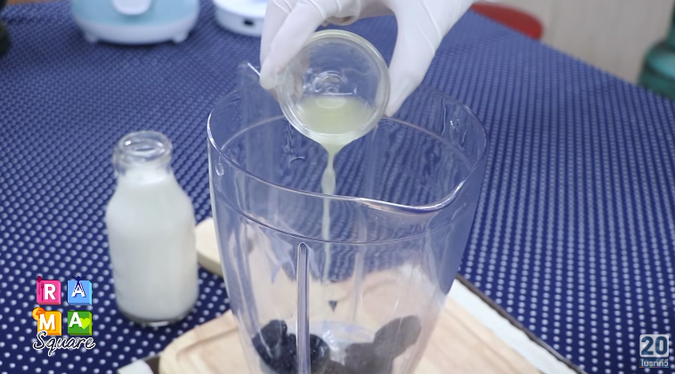 ปั่นลูกพรุนแห้งกับน้ำมะนาวในเครื่องปั่นจนละเอียด