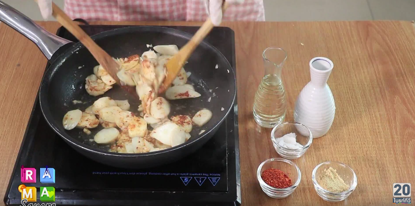 3. ปรุงรสด้วยผง nize , ดอกเกลือ , พริกหมาล่า ผัดจนเข้ากัน