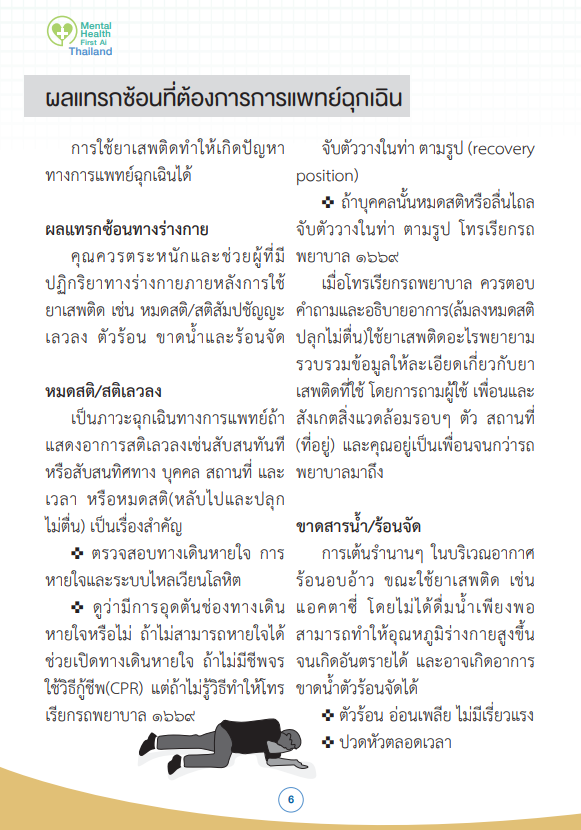 ส่วนการปฐมพยาบาล ดูในเอกสารที่แนบมา ถ้าอาการหนักถึงขั้นหมดสติไม่รู้สึกตัวให้ทำตามนั้น ถ้าอาการไม่มากโทรปรึกษา 1669