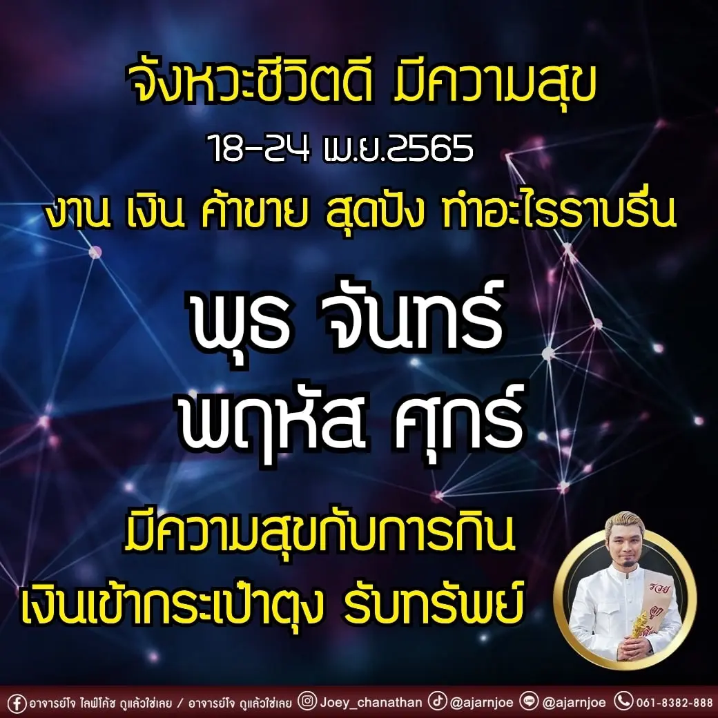 อาจารย์โจ ไลฟ์โค้ช เผย ดวง 4 วันเกิด เงินเข้ากระเป๋าตุง มีความสุขรับพลัง งานลื่นไหล โดยได้โพสต์ผ่านแฟนเพจ อาจารย์โจ ไลฟ์โค้ช ดูแล้วใช่เลย