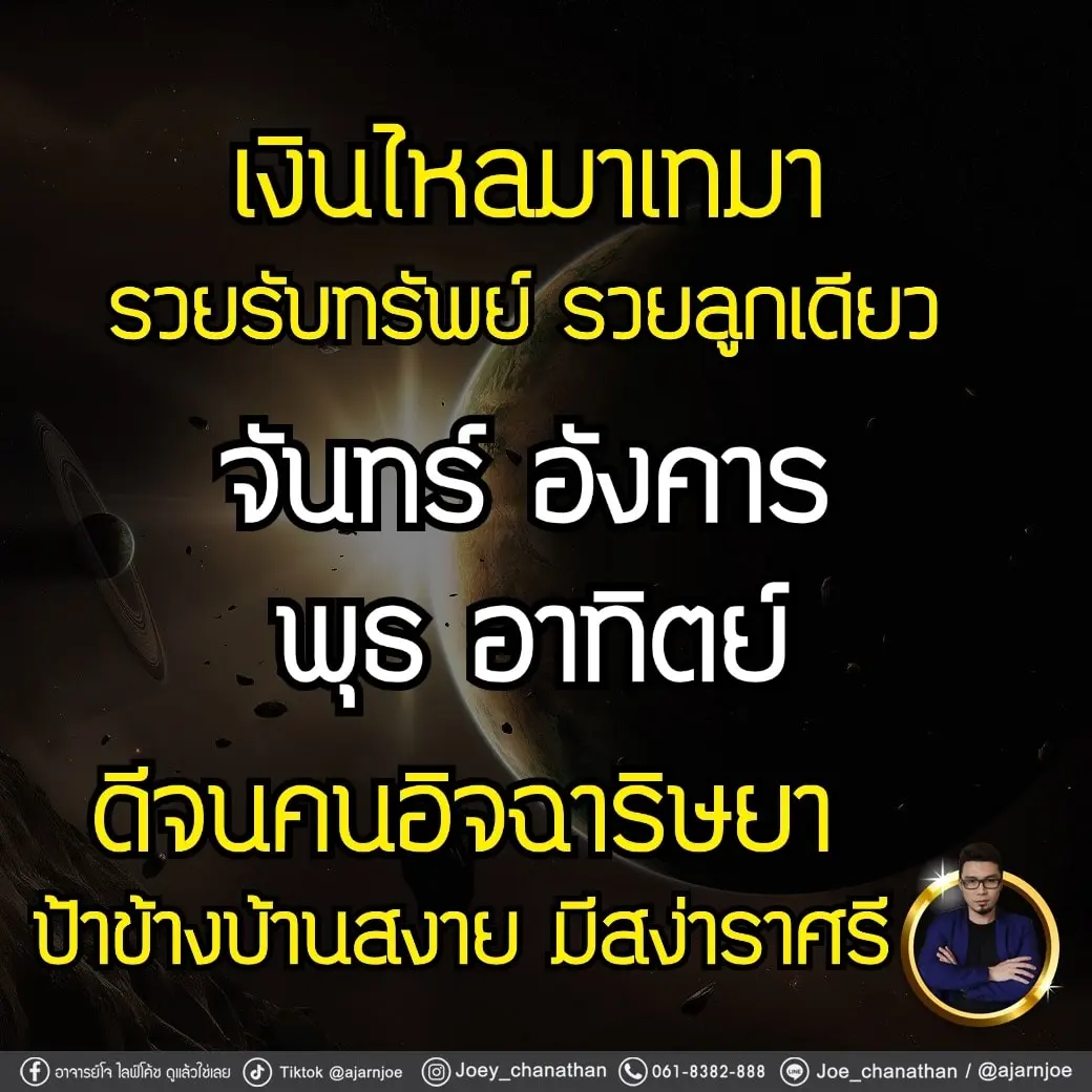 อาจารย์โจ ไลฟ์โค้ช เผย ดวง 4 วันเกิด เงินไหลมาเทมา ไม่ว่าจะทำอะไรเงินก็เข้ามาทุกทาง โดยได้โพสต์ผ่านแฟนเพจ อาจารย์โจ ไลฟ์โค้ช ดูแล้วใช่เลย