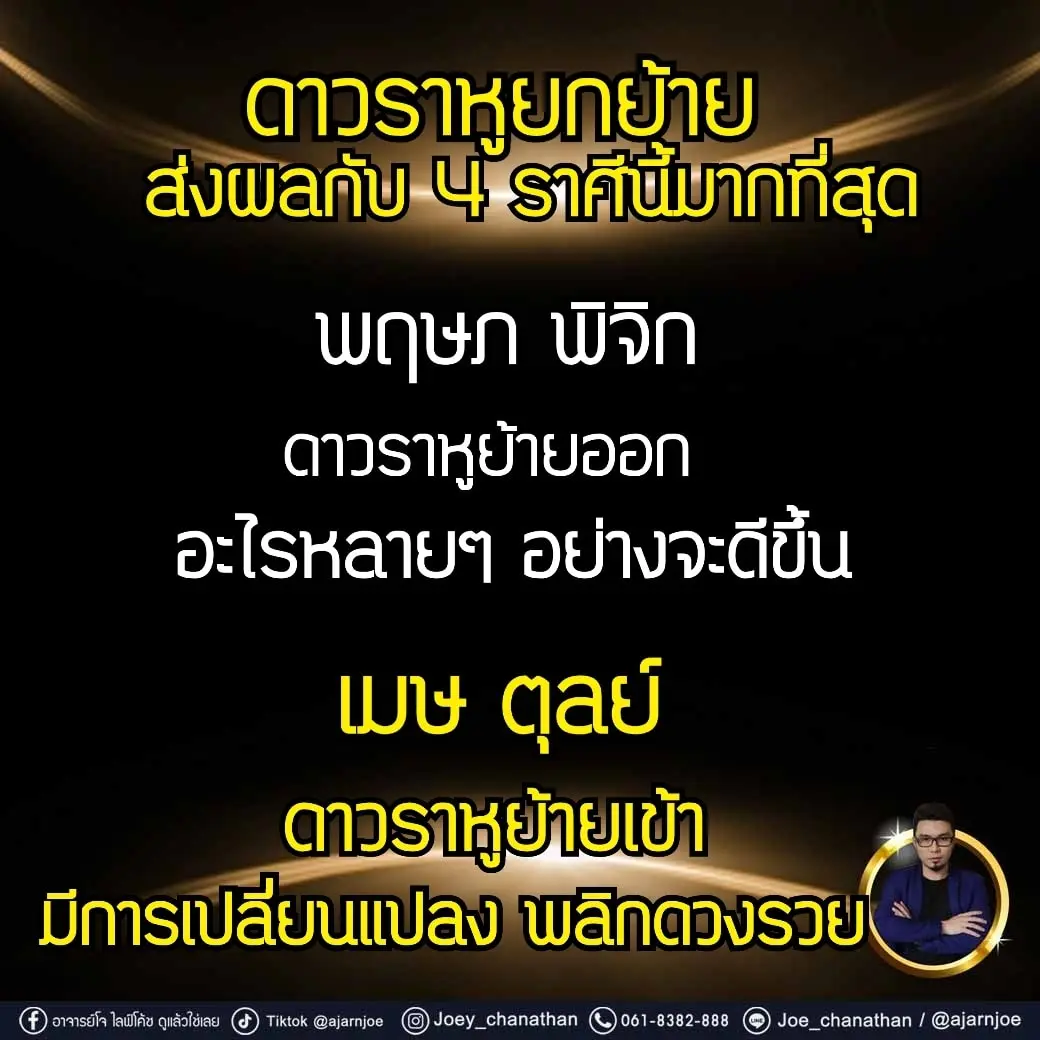 อาจารย์โจ ไลฟ์โค้ช เผย ดวง 4 ราศี ราหูยกย้าย มีผลมากสุดกับราศีดังต่อไปนี้ โดยได้โพสต์ผ่านแฟนเพจ อาจารย์โจ ไลฟ์โค้ช ดูแล้วใช่เลย