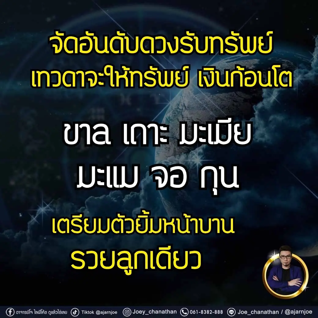อาจารย์โจ ไลฟ์โค้ช เผย ดวง 6 ปีนักษัตร เทวดาให้ทรัพย์ รับเงิน รับทองก้อนโต โดยได้โพสต์ผ่านแฟนเพจ อาจารย์โจ ไลฟ์โค้ช ดูแล้วใช่เลย