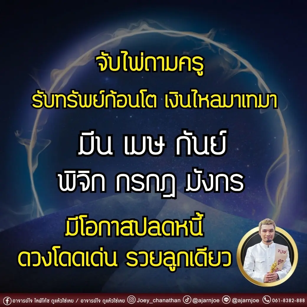อาจารย์โจ ไลฟ์โค้ช เผย ดวง 6 ราศี เตรียมเป็นเศรษฐี เงินก็มา โชคก็มี หมดหนี้หมดสิน โดยได้โพสต์ผ่านแฟนเพจ อาจารย์โจ ไลฟ์โค้ช ดูแล้วใช่เลย