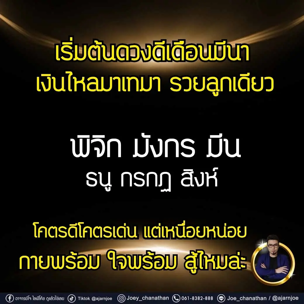 อาจารย์โจ ไลฟ์โค้ช เผย ดวง 6 ราศี มีนามีเงิน การเงินดีมาก ทรัพย์เข้ารัวๆ โดยได้โพสต์ผ่านแฟนเพจ อาจารย์โจ ไลฟ์โค้ช ดูแล้วใช่เลย