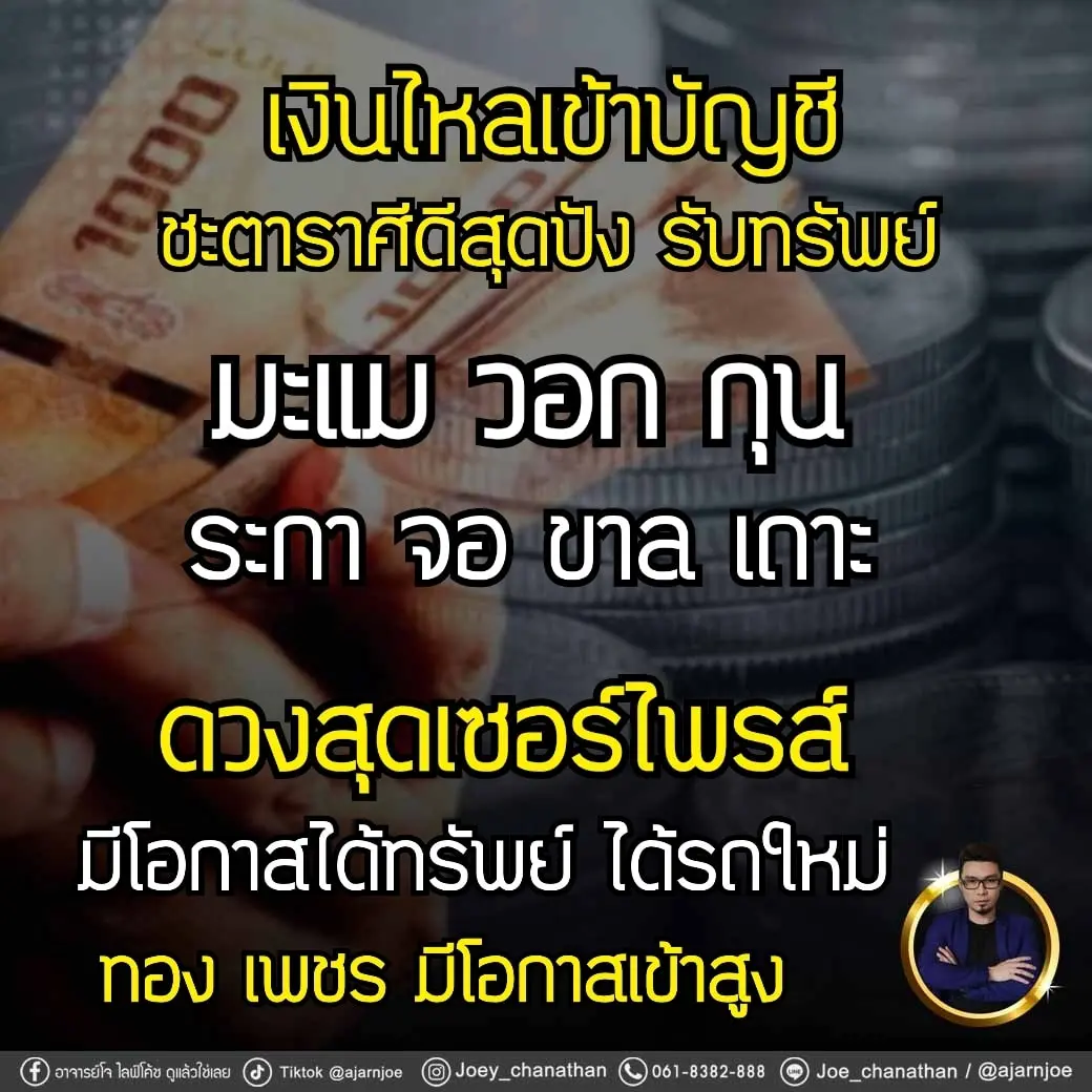 อาจารย์โจ ไลฟ์โค้ช เผย ดวง 7 ปีนักษัตร ชะตารับทรัพย์ มีโอกาสถูกหวย รวยแบบไม่คาดฝัน โดยได้โพสต์ผ่านแฟนเพจ อาจารย์โจ ไลฟ์โค้ช ดูแล้วใช่เลย