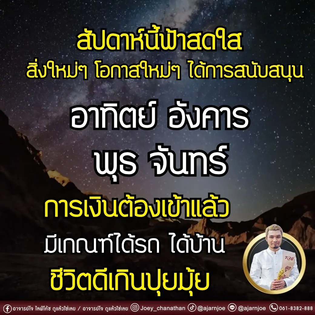 อาจารย์โจ ไลฟ์โค้ช เผย ดวง 4 วันเกิด สัปดาห์ฟ้าใส ผู้ใหญ่เมตตา มีเกณฑ์ได้บ้าน ได้รถใหม่ โดยได้โพสต์ผ่านแฟนเพจ อาจารย์โจ ไลฟ์โค้ช ดูแล้วใช่เลย