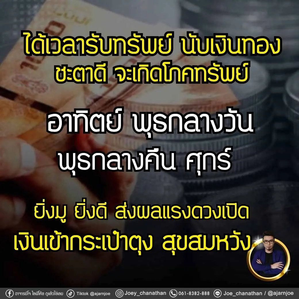 อาจารย์โจ ไลฟ์โค้ช ดูแล้วใช่เลย เผย ดวง 4 วันเกิด กระเป๋าตุง ดวงชะตารับทรัพย์ ผ่านแฟนเพจ อาจารย์โจ ไลฟ์โค้ช ดูแล้วใช่เลย