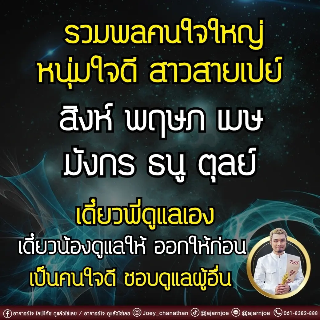 อาจารย์โจ ไลฟ์โค้ช เผย ดวง 6 ราศี สายเปย์ โอนไว เป็นคนจิตใจดี มีน้ำใจ ชอบเป็นผู้ให้ โดยได้โพสต์ผ่านแฟนเพจ อาจารย์โจ ไลฟ์โค้ช ดูแล้วใช่เลย