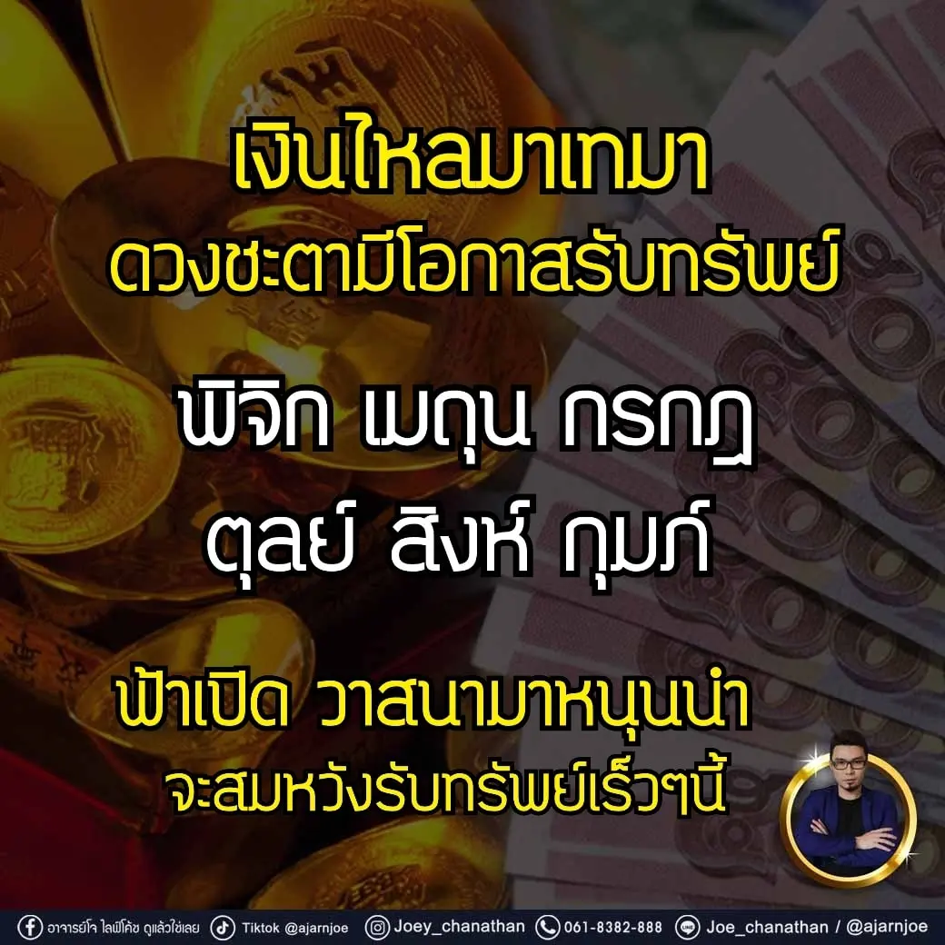 อาจารย์โจ ไลฟ์โค้ช ดูแล้วใช่เลย เผย 6 ราศี ดวงชะตารับทรัพย์ มีโอกาสสมหวังดังปรารถนาในช่วงระยะนี้ ผ่านแฟนเพจ อาจารย์โจ ไลฟ์โค้ช ดูแล้วใช่เลย