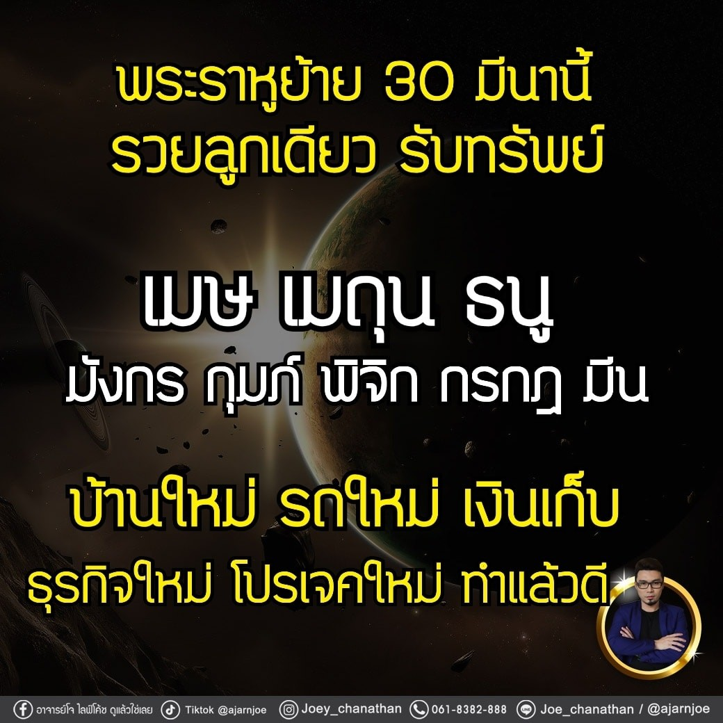 อาจารย์โจ ไลฟ์โค้ช ได้กล่าวถึง 30นี้พระราหูย้าย! 8 ราศี รวยลูกเดียวมีโอกาสจะได้บ้านใหม่รถใหม่