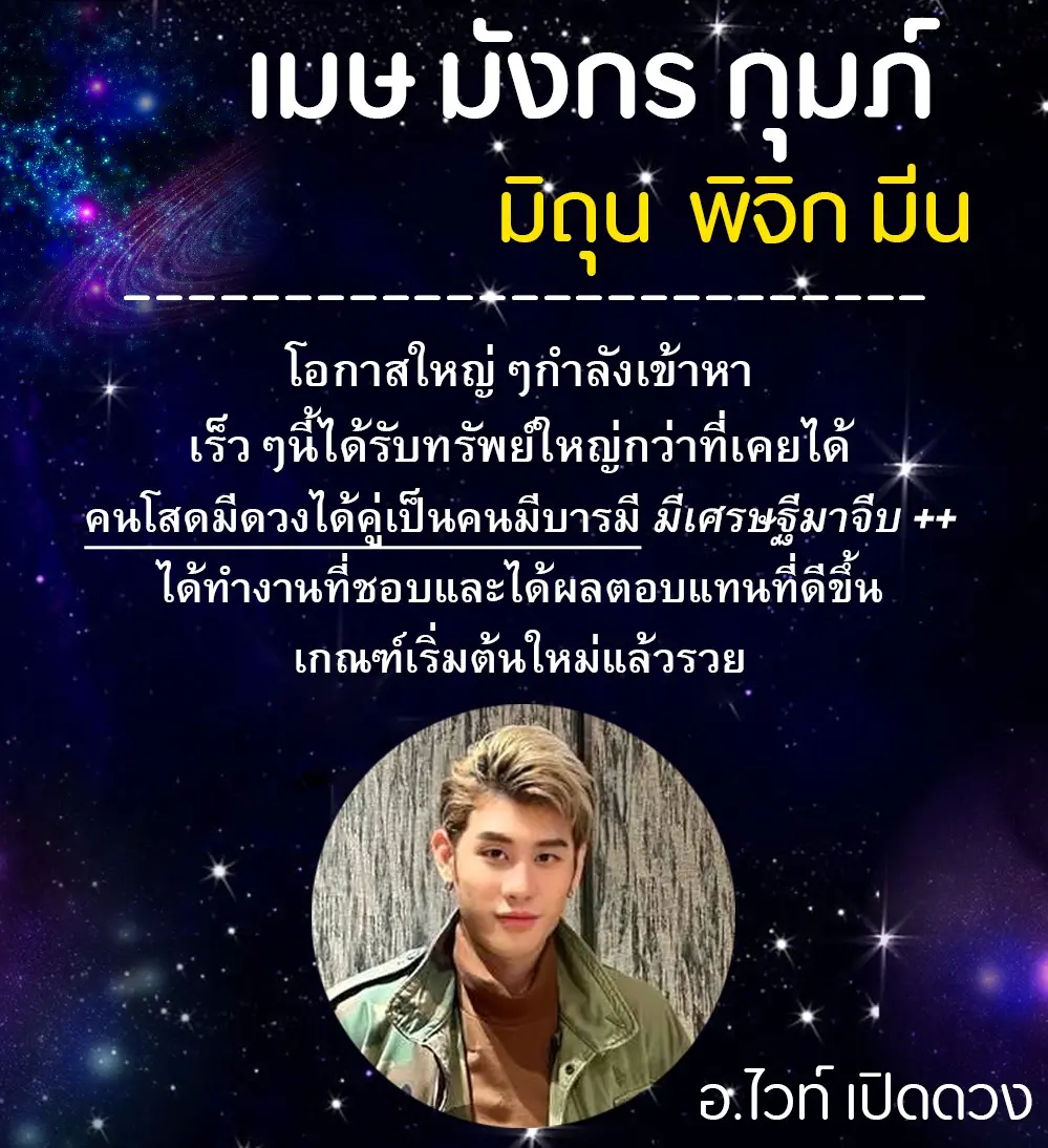อาจารย์ไวท์ เปิดดวง หมอดูโอปป้า เผย ดวง 6 ราศี โอกาสใหญ่กำลังมา งาน เงิน ความรัก จะดีกว่าที่เคย โดยได้โพสต์ผ่านแฟนเพจ White Jewel