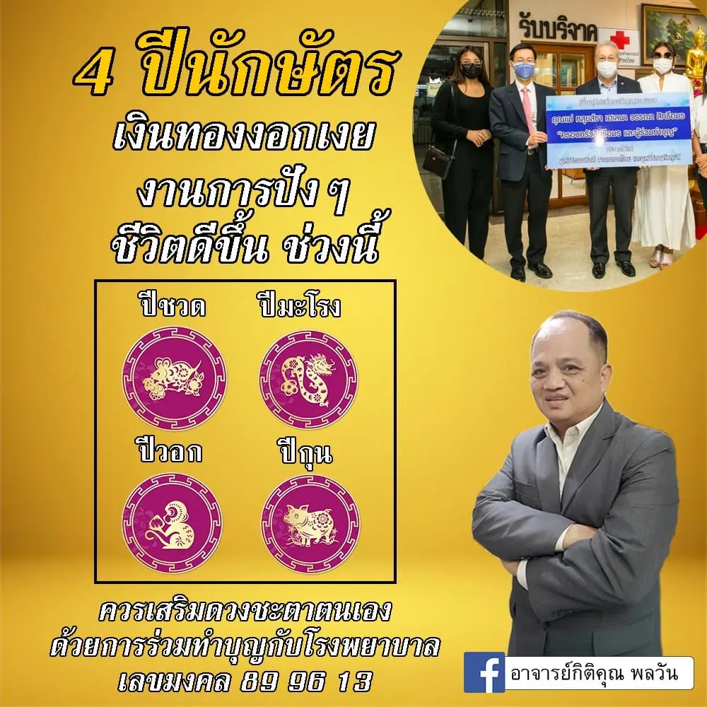 อาจารย์กิติคุณ พลวัน เลขาธิการสถาบันบ้านพยากรณ์ เผย ดวง 4 ปีนักษัตร เงินงอกเงย งาน​ เงิน​ ขาขึ้น โดยได้เผยผ่านแฟนเพจ อาจารย์กิติคุณ พลวัน