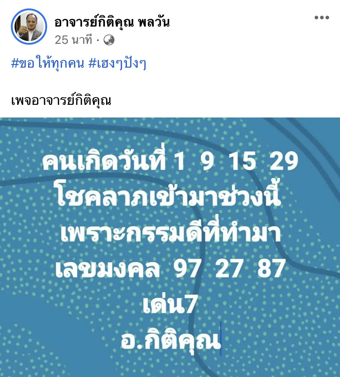อาจารย์กิติคุณ พลวัน เลขาธิการสถาบันบ้านพยากรณ์ เผย คนที่เกิดวันที่ต่อไปนี้ ดวงเฮง โชคเข้ามา​  โดยได้โพสต์ผ่านแฟนเพจ อาจารย์กิติคุณ พลวัน