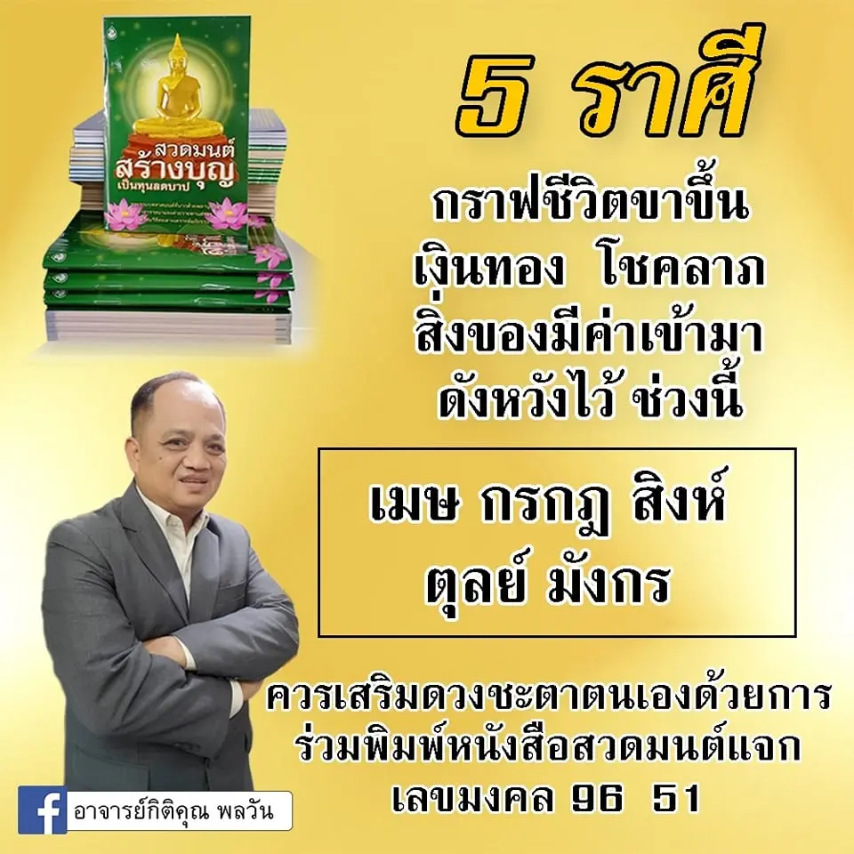 อาจารย์กิติคุณ พลวัน เลขาธิการสถาบันบ้านพยากรณ์ เผย ดวง 5 ราศี กราฟชีวิตขาขึ้น ชะตาดึงดูดทรัพย์! โดยได้โพสต์ผ่านแฟนเพจ อาจารย์กิติคุณ พลวัน