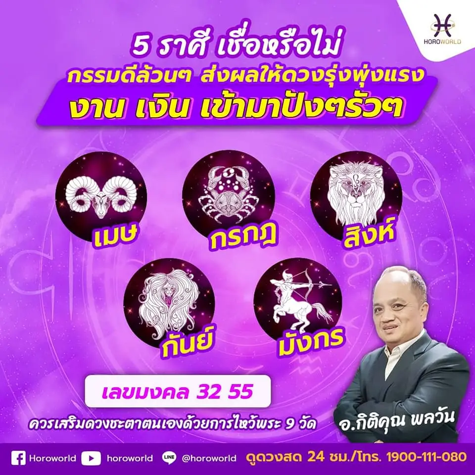 อาจารย์กิติคุณ พลวัน เลขาธิการสถาบันบ้านพยากรณ์ เผย ดวง 5 ราศี ทำดีได้ดี บุญหนุนนำการงาน การเงิน โดยได้โพสต์ผ่านแฟนเพจ อาจารย์กิติคุณ พลวัน