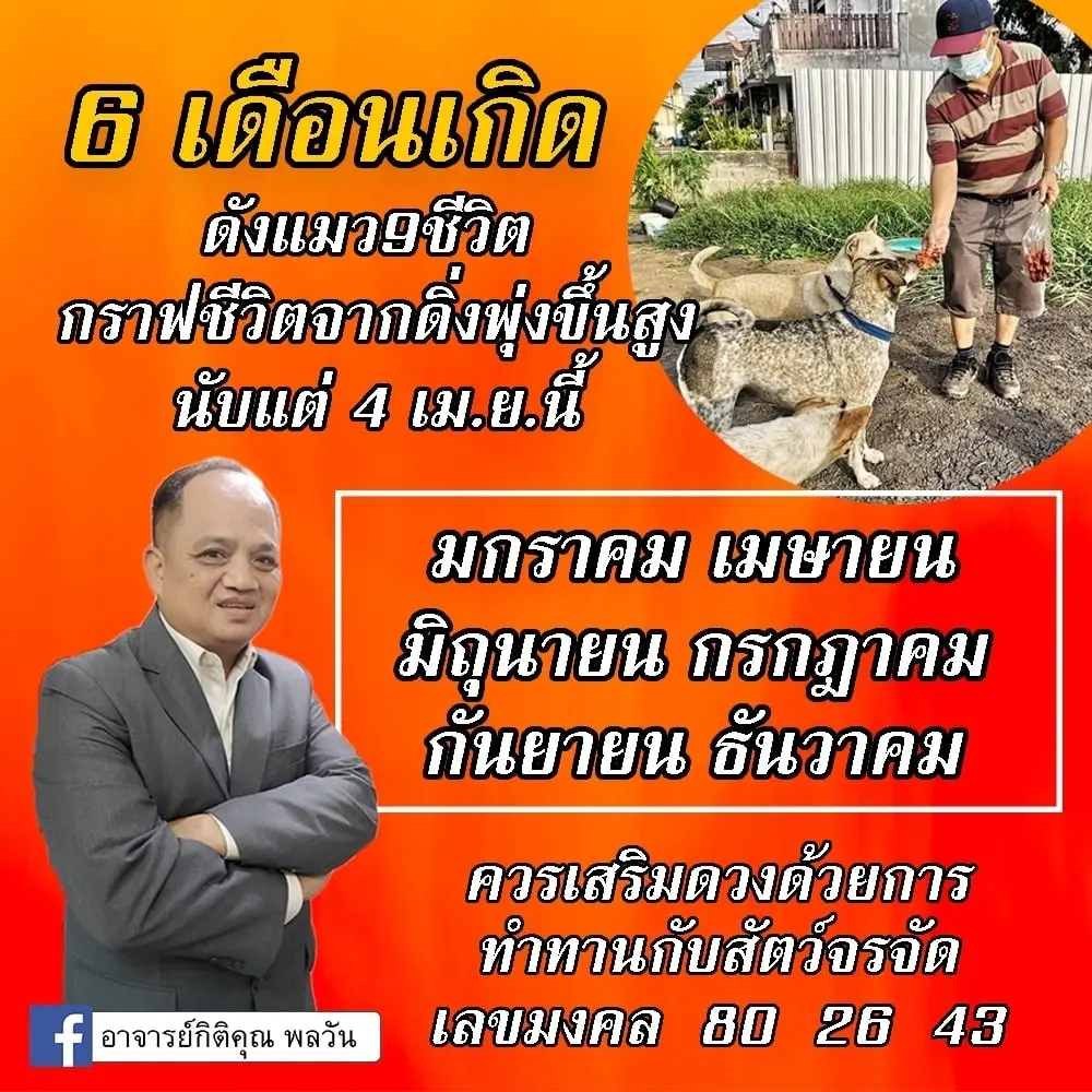 อาจารย์กิติคุณ พลวัน เลขาธิการสถาบันบ้านพยากรณ์ เผย ดวง 6 เดือนเกิด แมว 9 ชีวิต ชีวิตไม่สู้กลับ โดยได้โพสต์ผ่านแฟนเพจ อาจารย์กิติคุณ พลวัน