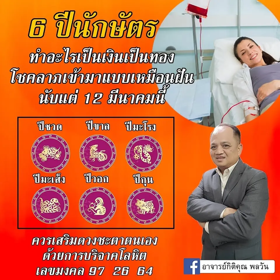 อาจารย์กิติคุณ พลวัน เลขาธิการสถาบันบ้านพยากรณ์ เผย ดวง 6 ปีนักษัตร โชคมาเยือน เงินเข้าเหมือนฝัน โดยได้โพสต์ผ่านแฟนเพจ อาจารย์กิติคุณ พลวัน