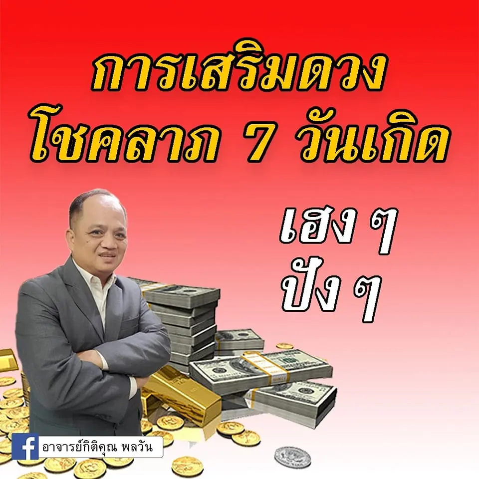 อาจารย์กิติคุณ พลวัน เผย การเสริมดวง โชคลาภ 7 วันเกิด ให้เฮงๆปังๆ ในเรื่องการเงินการทอง โดยได้โพสต์ผ่านแฟนเพจ อาจารย์กิติคุณ พลวัน
