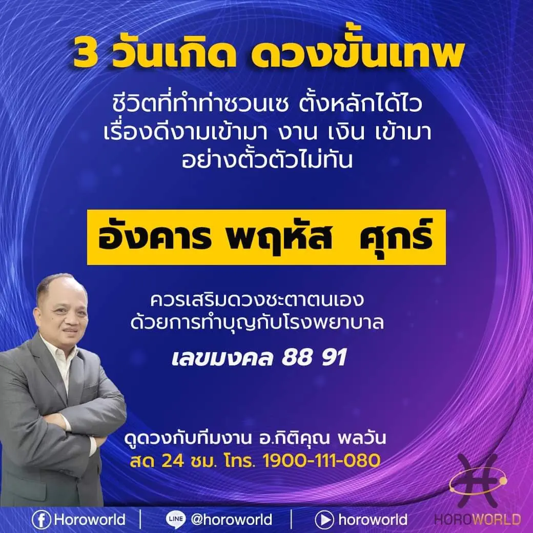 อาจารย์กิติคุณ พลวัน เผย 3 วันเกิด ดวงขั้นเทพ สิ่งที่ดีงามจะเข้ามาในชีวิต ส่งผลต่อการงาน การเงิน โดยได้โพสต์ผ่านแฟนเพจ อาจารย์กิติคุณ พลวัน