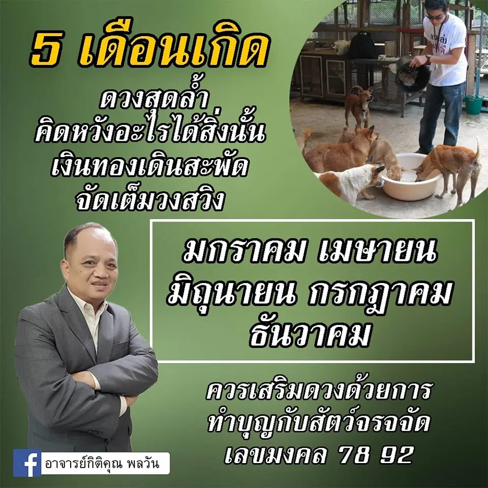อาจารย์กิติคุณ พลวัน เลขาธิการสถาบันบ้านพยากรณ์ เผย 5 เดือนเกิด หวังสิ่งใด ได้สิ่งนั้น โดยได้โพสต์ผ่านแฟนเพจ อาจารย์กิติคุณ พลวัน
