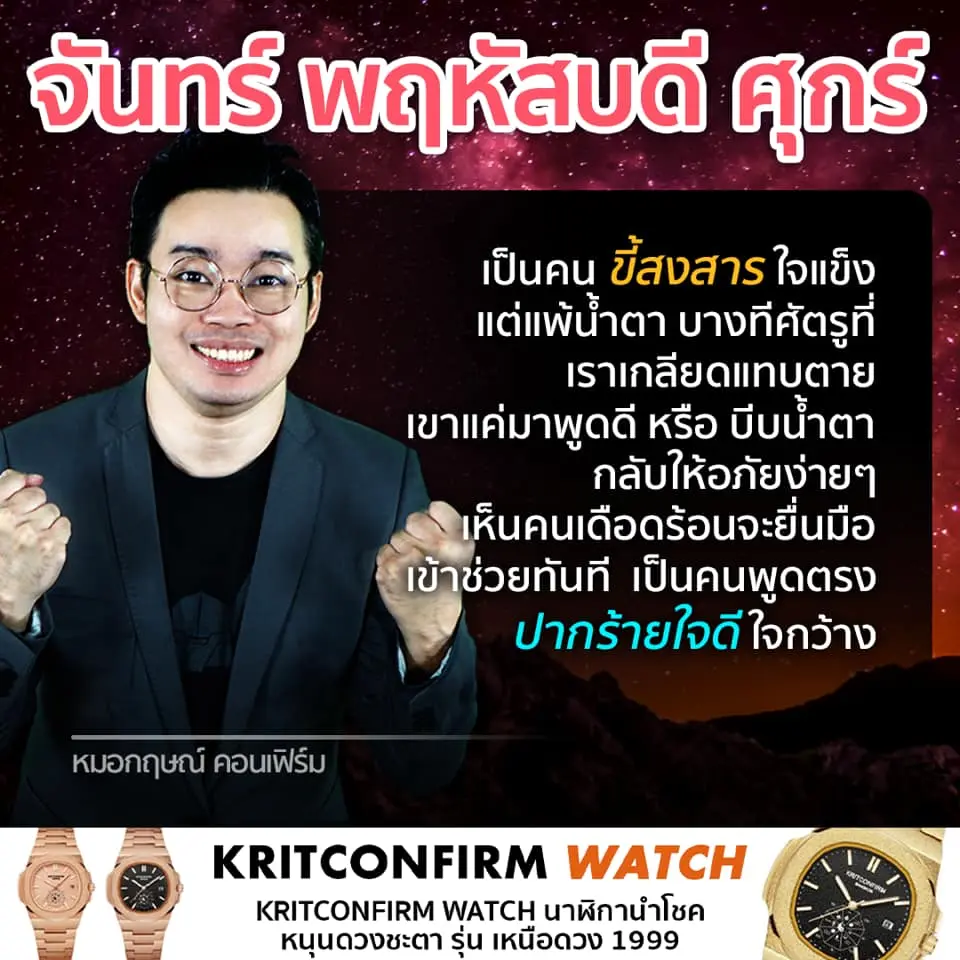 หมอกฤษณ์ คอนเฟิร์ม เผย ดวงชะตา 3 วันเกิด แพ้น้ำตา ปากร้ายแต่ใจดี ขี้สงสาร โดยได้เผยผ่านทางแฟนเพจ หมอกฤษณ์ คอนเฟิร์ม ดูดวงฟรีแก่ทุกท่าน
