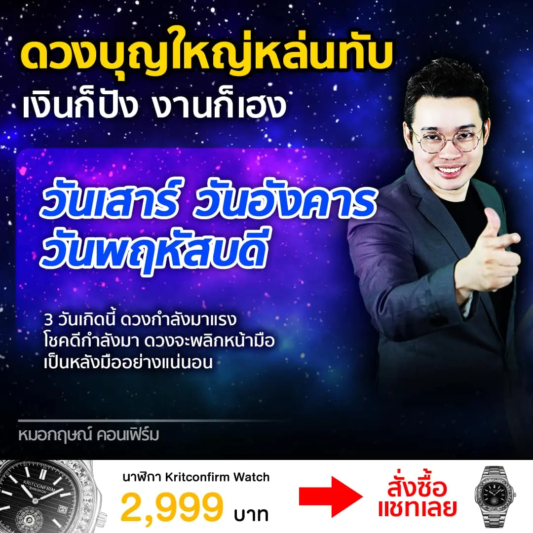 หมอกฤษณ์ คอนเฟิร์ม เผย ดวง 3 วันเกิด บุญใหญ่หล่นทับ ดวงดี ดวงแรง โชควิ่งเข้าหา โดยได้เผยผ่านทางแฟนเพจ หมอกฤษณ์ คอนเฟิร์ม ดูดวงฟรีแก่ทุกท่าน