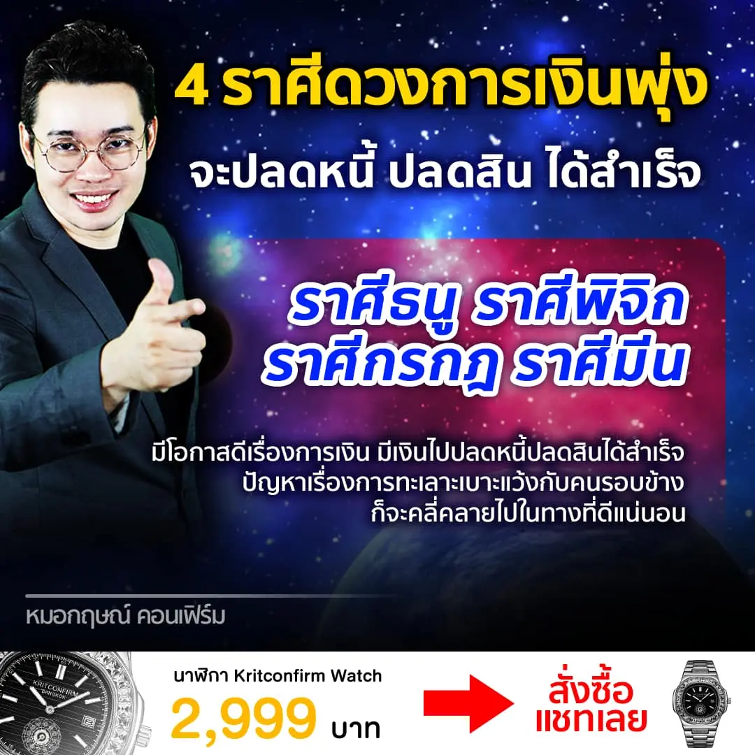 หมอกฤษณ์ คอนเฟิร์ม เผย ดวง 4 ราศี การเงินพุ่ง ปลดหนี้ ปลดสิน ได้สำเร็จ โดยได้เผยผ่านทางแฟนเพจ หมอกฤษณ์ คอนเฟิร์ม ดูดวงฟรีแก่ทุกท่าน