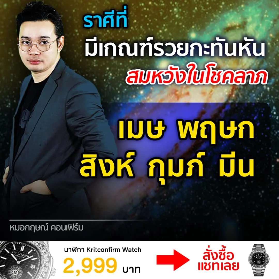 หมอกฤษณ์ คอนเฟิร์ม เผย 5 ราศี สมหวังในโชคลาภ ในช่วงนี้มีเกณฑ์รวยกะทันหัน โดยได้เผยผ่านทางแฟนเพจ หมอกฤษณ์ คอนเฟิร์ม ดูดวงฟรีแก่ทุกท่าน