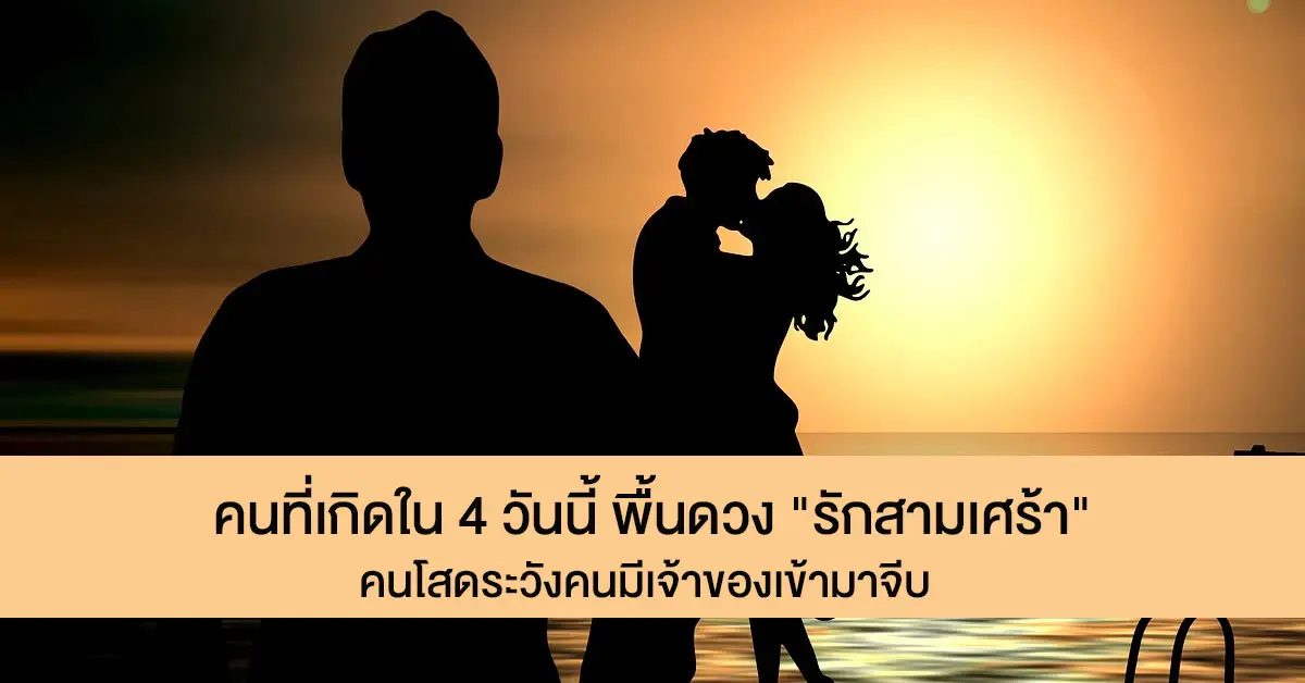 ศีลข้อสามเคยท่องอยู่เบาะ! ระวังทั้งใจของเขา และใจของเรา คนเกิดใน 4 วันนี้ เป็นพื้นดวง “รักสามเศร้า” มีคนเข้าแทรกกลาง หรืออาจเป็นตัวเราเองที่เผลอใจ