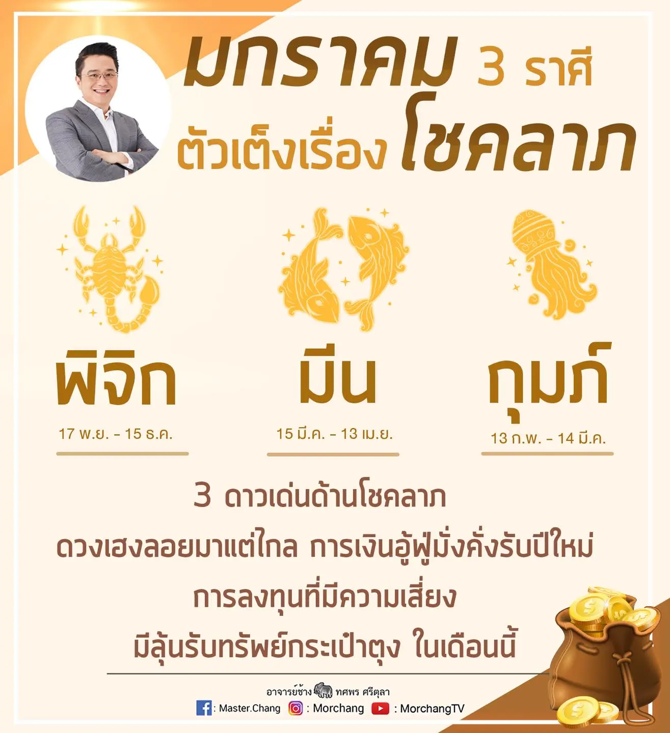 โดย หมอช้าง ทศพร ศรีตุลา ได้กล่าวถึง 3 ราศี รับทรัพย์กระเป๋าตุง