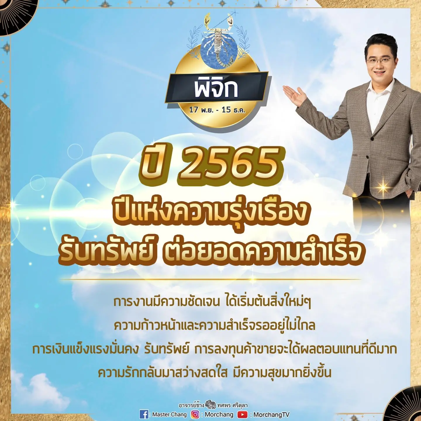 โดย หมอช้าง ทศพร ศรีตุลา ได้ระบุถึง ดวงปี2565 ของชาว “ราศีพิจิก“