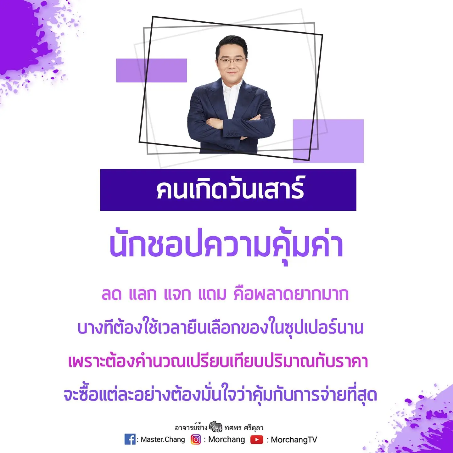 หมอช้าง ทศพร ศรีตุลา เผย ดวงวันเกิด ที่เลือกเก่ง มีความสามารถในการเลือกสรรสิ่งต่างๆได้คุ้มค่า โดยได้เผยผ่านทางแฟนเพจ หมอช้าง ทศพร ศรีตุลา