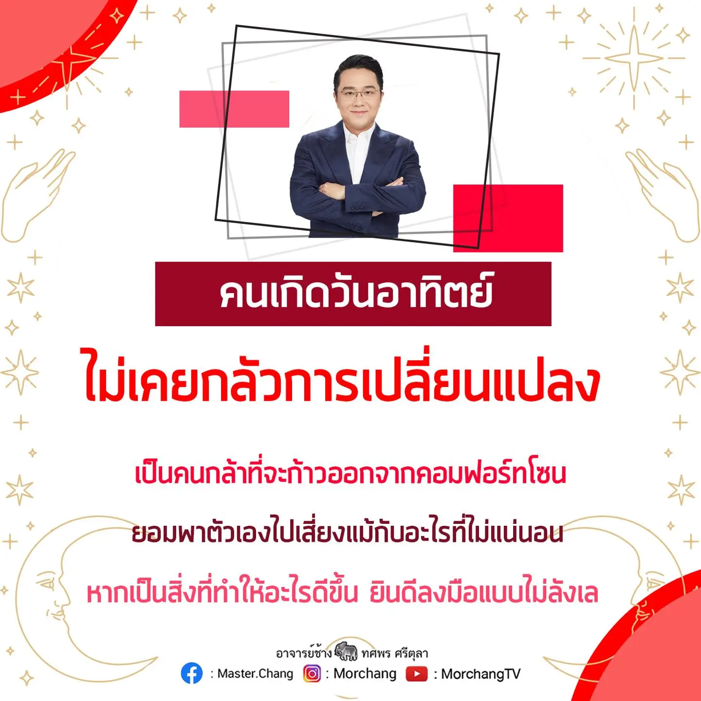หมอช้าง ทศพร ศรีตุลา เผย ดวงวันเกิด ที่พร้อมสำหรับทุกการเปลี่ยนแปลง หากทำแล้วดีขึ้นก็จัดมาเลย โดยได้เผยผ่านทางแฟนเพจ หมอช้าง ทศพร ศรีตุลา