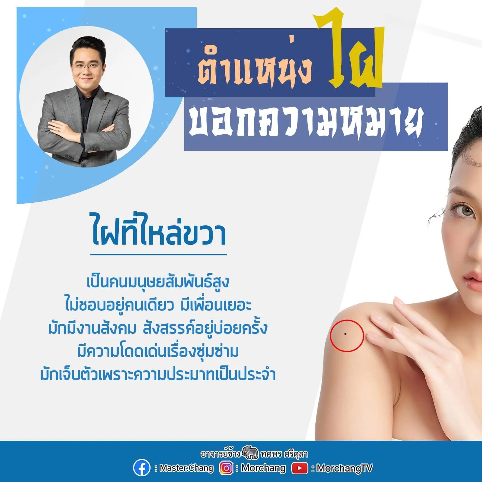 หมอช้าง ทศพร ศรีตุลา เผย ตำแหน่งไฝ ทำนายดวงชะตา บ่งบอกนิสัย และ ความหมาย โดยได้โพสต์ผ่านทางแฟนเพจ หมอช้าง ทศพร ศรีตุลา