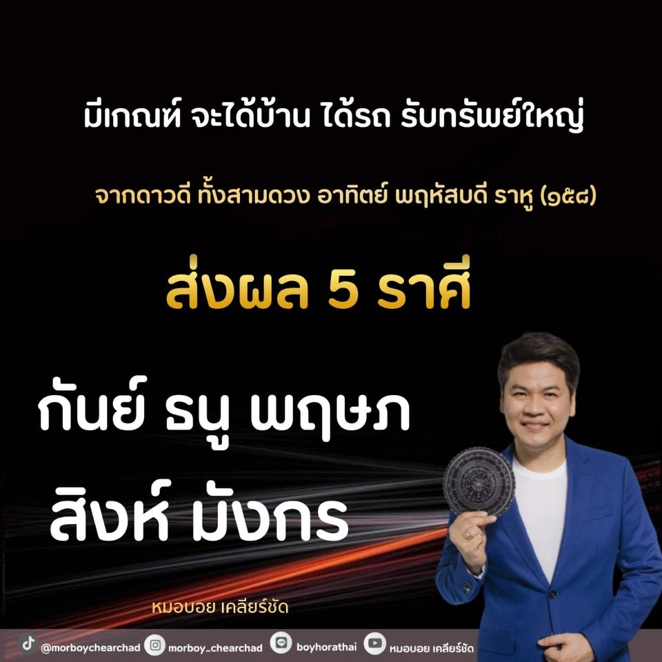 หมอบอย เคลียร์ชัด หมอดูนักพยากรณ์ เปิดดวง 5 ราศี มีเกณฑ์จะได้บ้านได้รถได้ทรัพย์ใหญ่จากดาวดีทั้งสาม