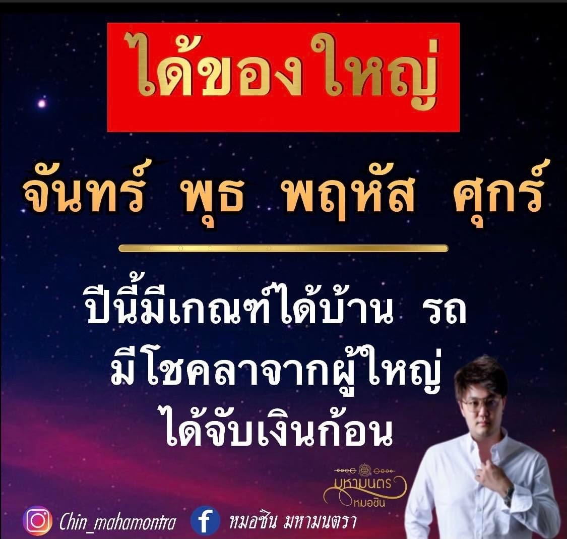 เมื่อคืนที่ผ่านมาเฟสบุ๊คแฟนเพจ หมอชิน มหามนตรา ได้ออกมาโพสต์คำทำนายสำหรับสายมูว่า ดวง 4 วันเกิด ปีนี้มีเกณฑ์ได้โชคลาภจับเงินก้อน
