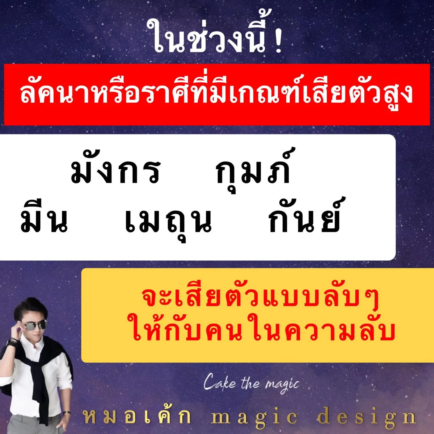 หมอเค้ก Magic stone เผย ดวง 5 ราศี มีโอกาสเสียตัวสูง เสียใจไม่ว่า..แต่ขอเสียตัวด้วยได้ไหมล่ะ! โดยได้โพสต์ผ่านแฟนเพจ หมอเค้ก Magic stone
