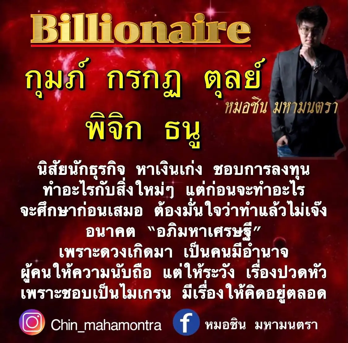 หมอชิน มหามนตรา เผย 5 ราศี ดวงนักธุรกิจ จะรวยด้วยตัวเอง ไม่เหมาะที่จะเป็นลูกน้องใคร หรือร่วมหุ้นกับใคร โดยได้โพสต์ผ่านแฟนเพจ หมอชิน มหามนตรา