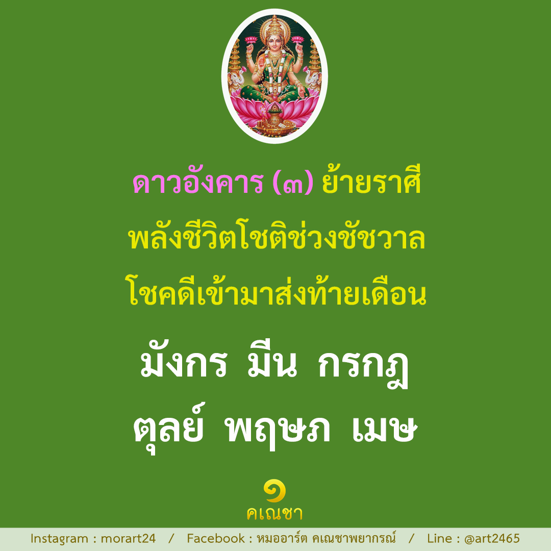 หมออาร์ต คเณชาพยากรณ์ เผย ดาวอังคารย้ายราศี มีทั้งดวงดีและที่ต้องระวัง ได้โพสต์ผ่านแฟนเพจ หมออาร์ต คเณชาพยากรณ์ ดูดวงไพ่พระพิฆเนศ