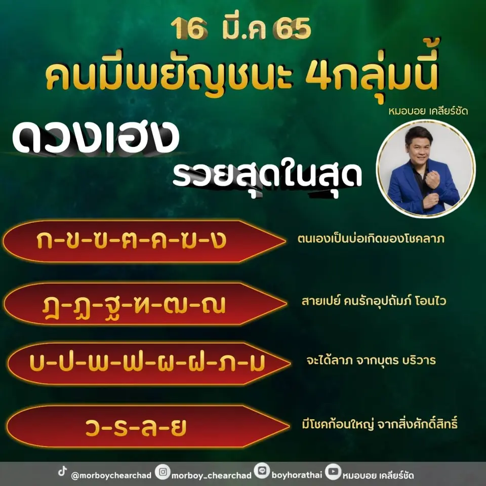 หมอบอย เคลียร์ชัด เผย ดวงเฮง รวยสุดๆ วันที่ 16 มีนาคม 2565 คน 4 กลุ่มนี้ จะได้โชคใหญ่ โดยได้โพสต์ผ่านแฟนเพจ หมอบอย เคลียร์ชัด