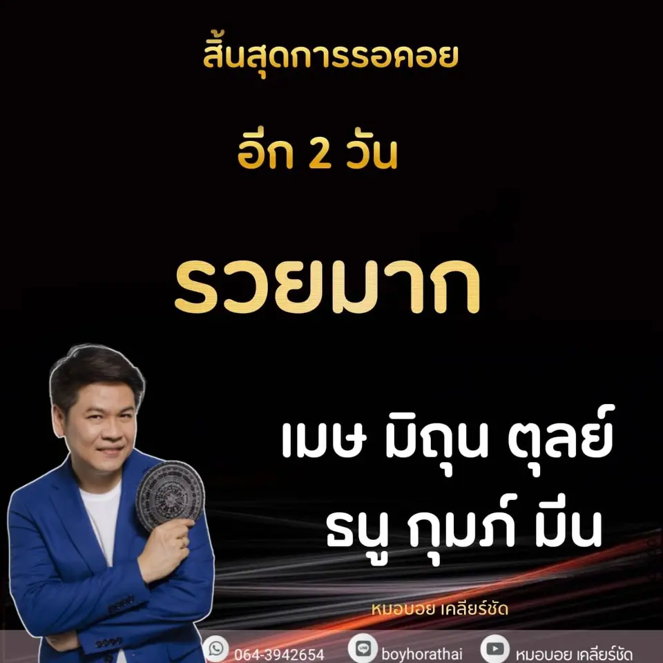หมอบอย เคลียร์ชัด เผย ดวง 6 ราศี มีเกณฑ์ถูกหวย มีโอกาสรวยจากโชคลาภ ชะตาเข้าขั้นเศรษฐี! โดยได้โพสต์ผ่านแฟนแพจ หมอบอย เคลียร์ชัด